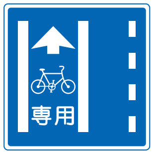 道路標識等によって、自転車専用通行帯(自転車レーン)があるときは、その部分を通行しなければなりません(逆走不可)