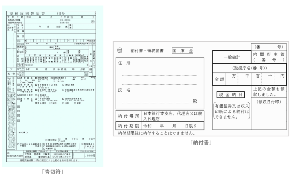 反則金を伴う違反があった場合でも、青切符と納付書が渡されるだけで、その場で直接反則金を徴収されることはないので注意しましょう💁