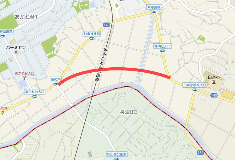 開通するのは田奈駅北西の田奈小学校入口からあかね台入口交差点までの約1,150mの区間
