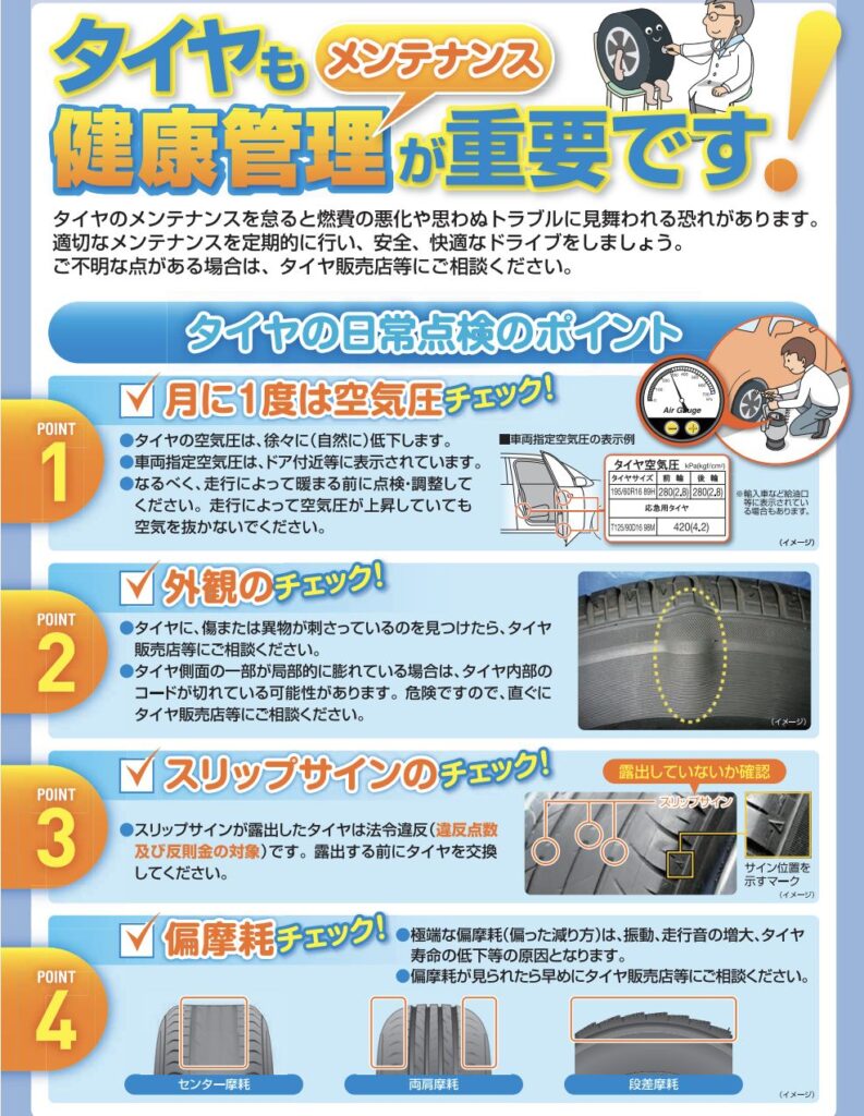 運転前には空気圧チェックをはじめとするタイヤ点検をして、安全で快適なドライブを楽しみましょう🚙💨