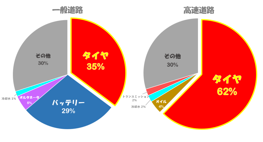 パンクやバースト(破裂)などのタイヤトラブルが故障部位別発生件数 第位になってます😱