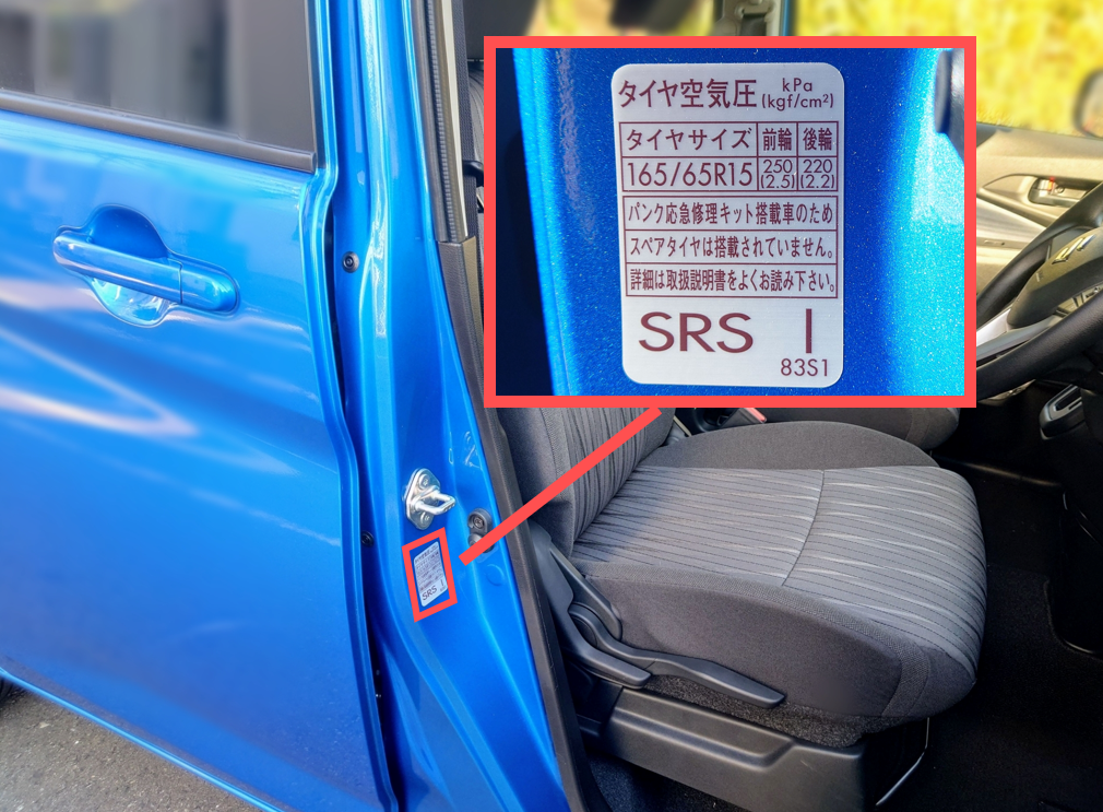運転席のドアの内側に貼られている表示シールで確認することができます🔍