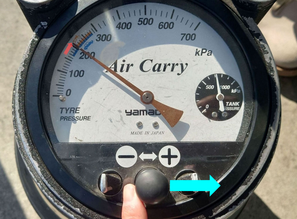 数秒入れたらレバーを離しエアゲージで空気圧を確認します⏱