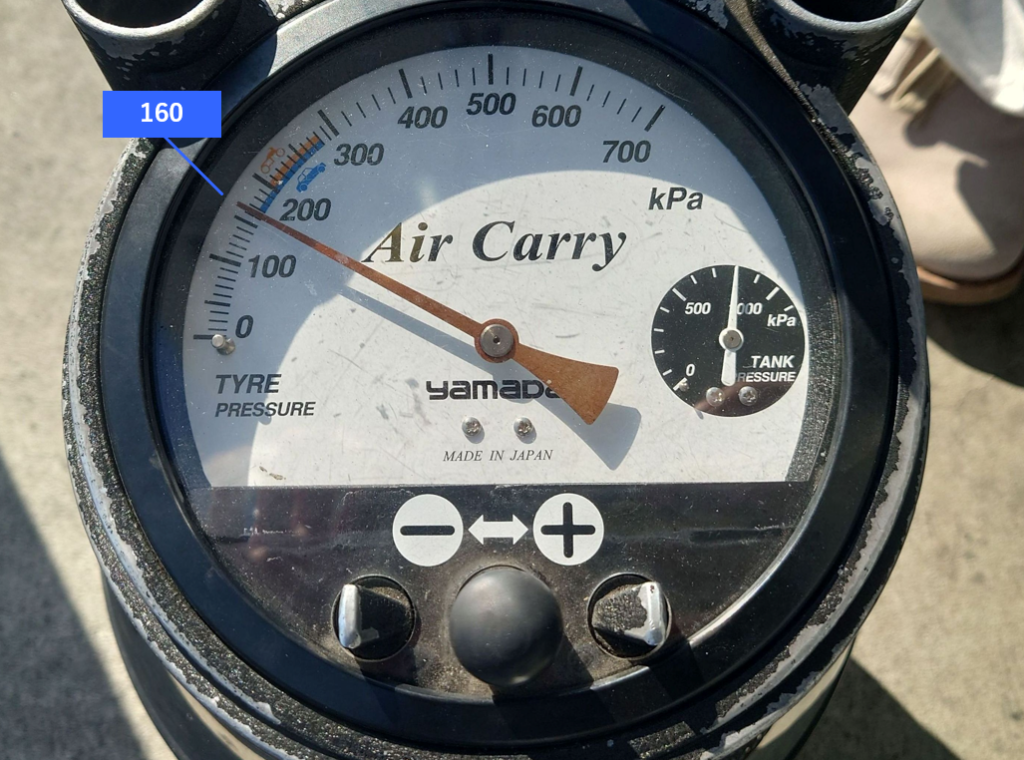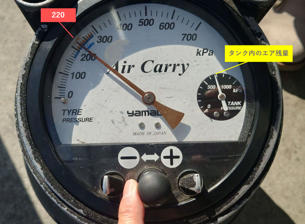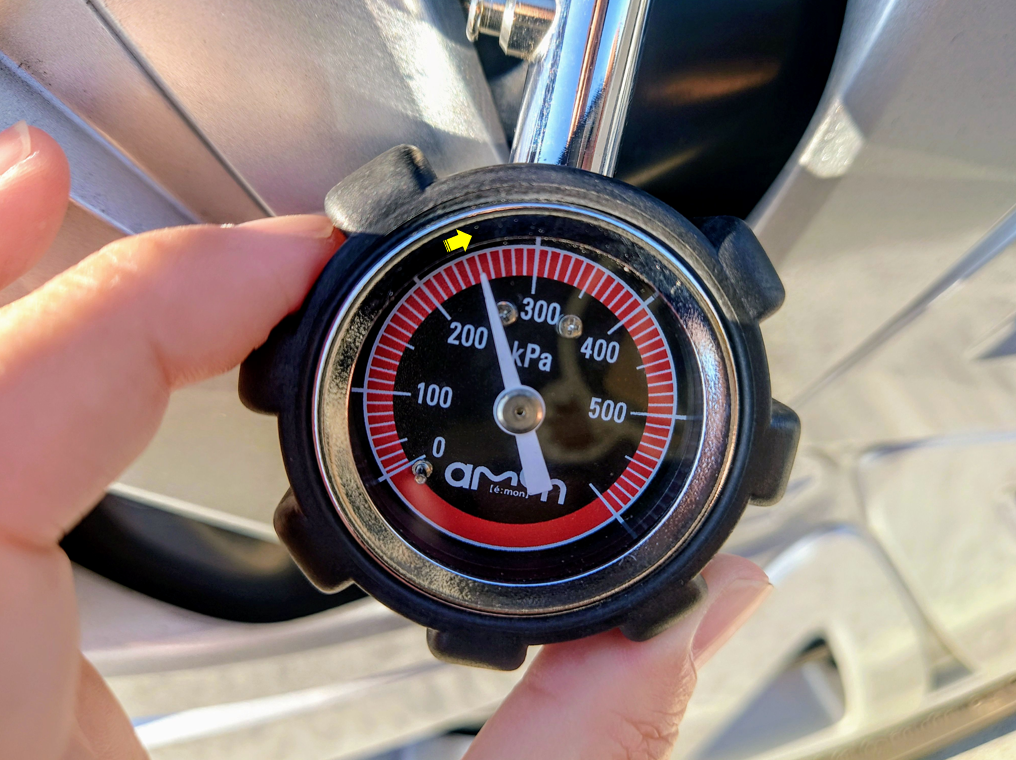 押し当てるとメーターに現在の空気圧が表示されます⏱