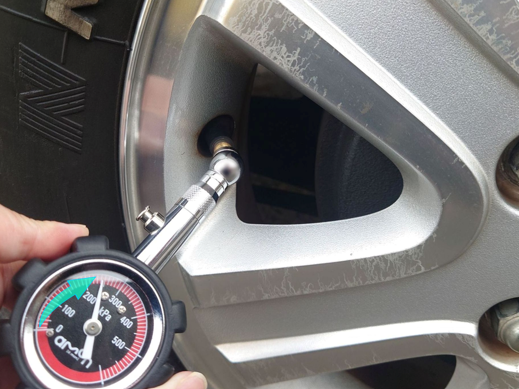 ガソリンスタンドでは、指定空気圧から0~20kPaの範囲内で少し高めに調整し、タイヤが冷えてからエアゲージを使って空気を抜きながら調整するのがよいかもしれません💨